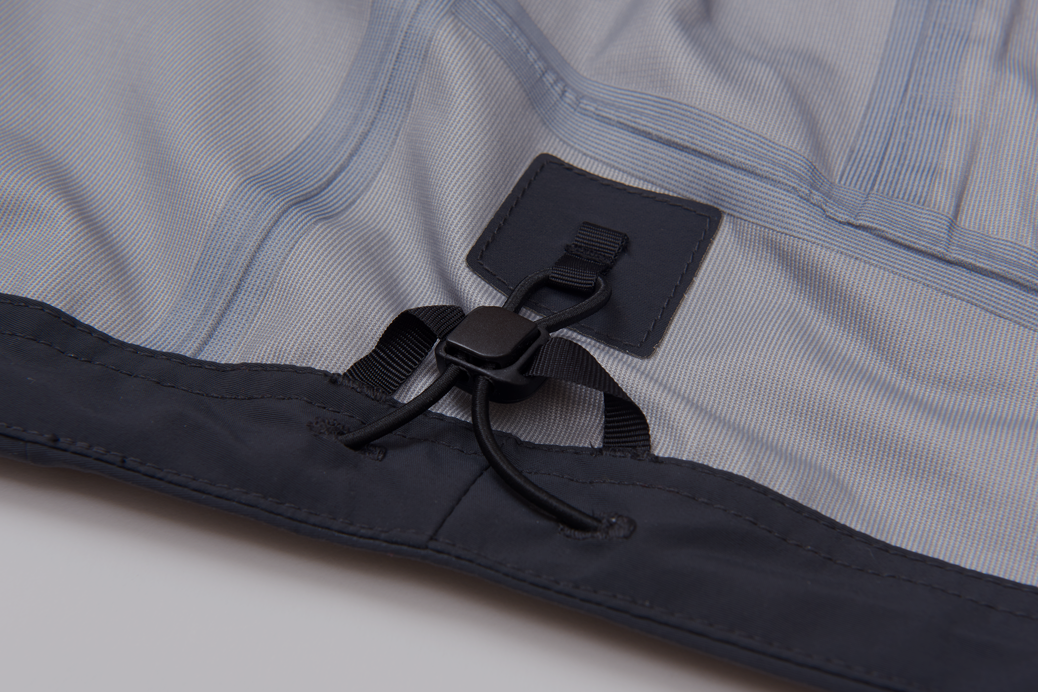 表面のDWR(耐久撥水)に加え、裏面にも防水PUコーティングを施した新素材を採用しました。
