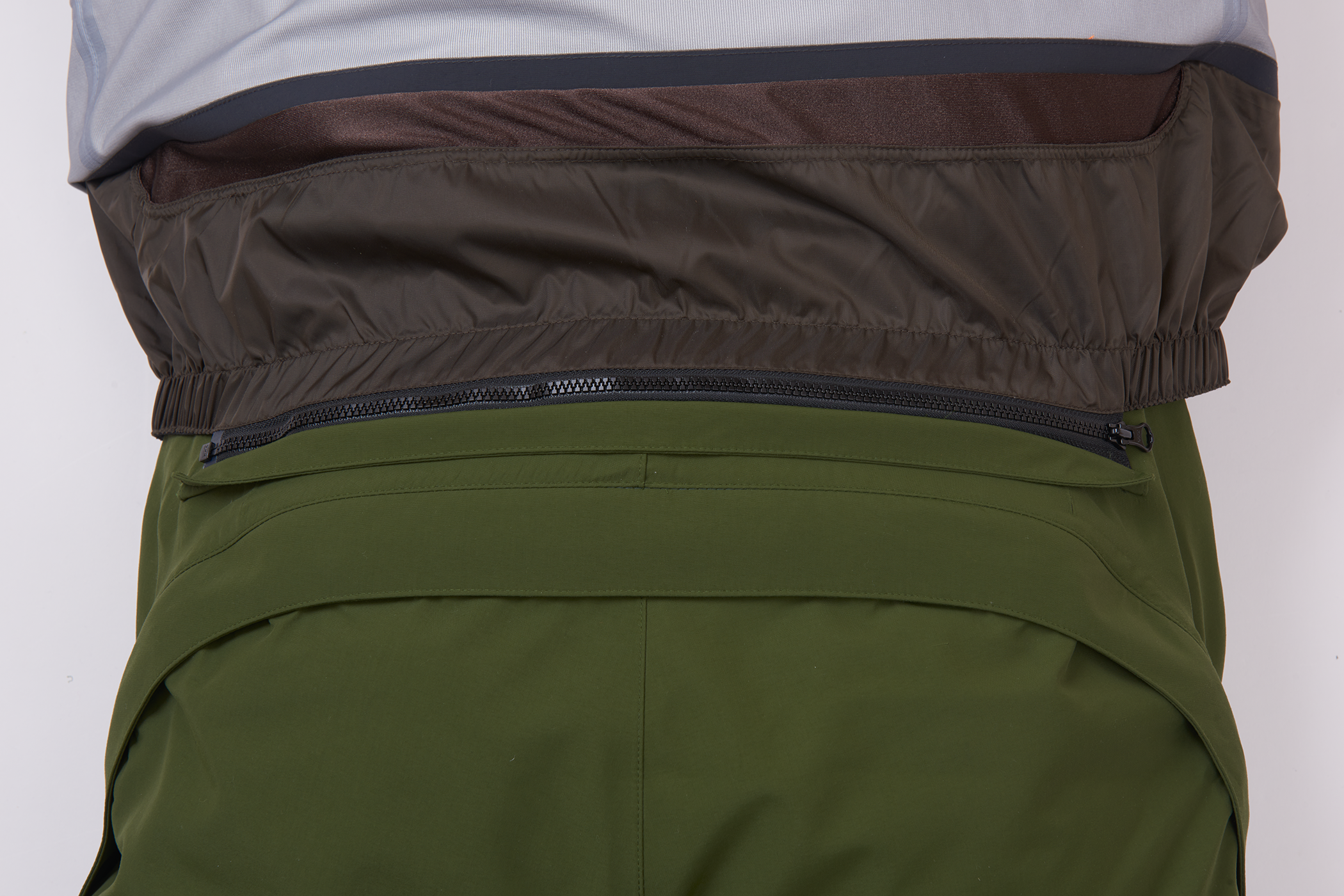 - ジャケットを着たままでも用を足すことができる背面のヒップジッパー