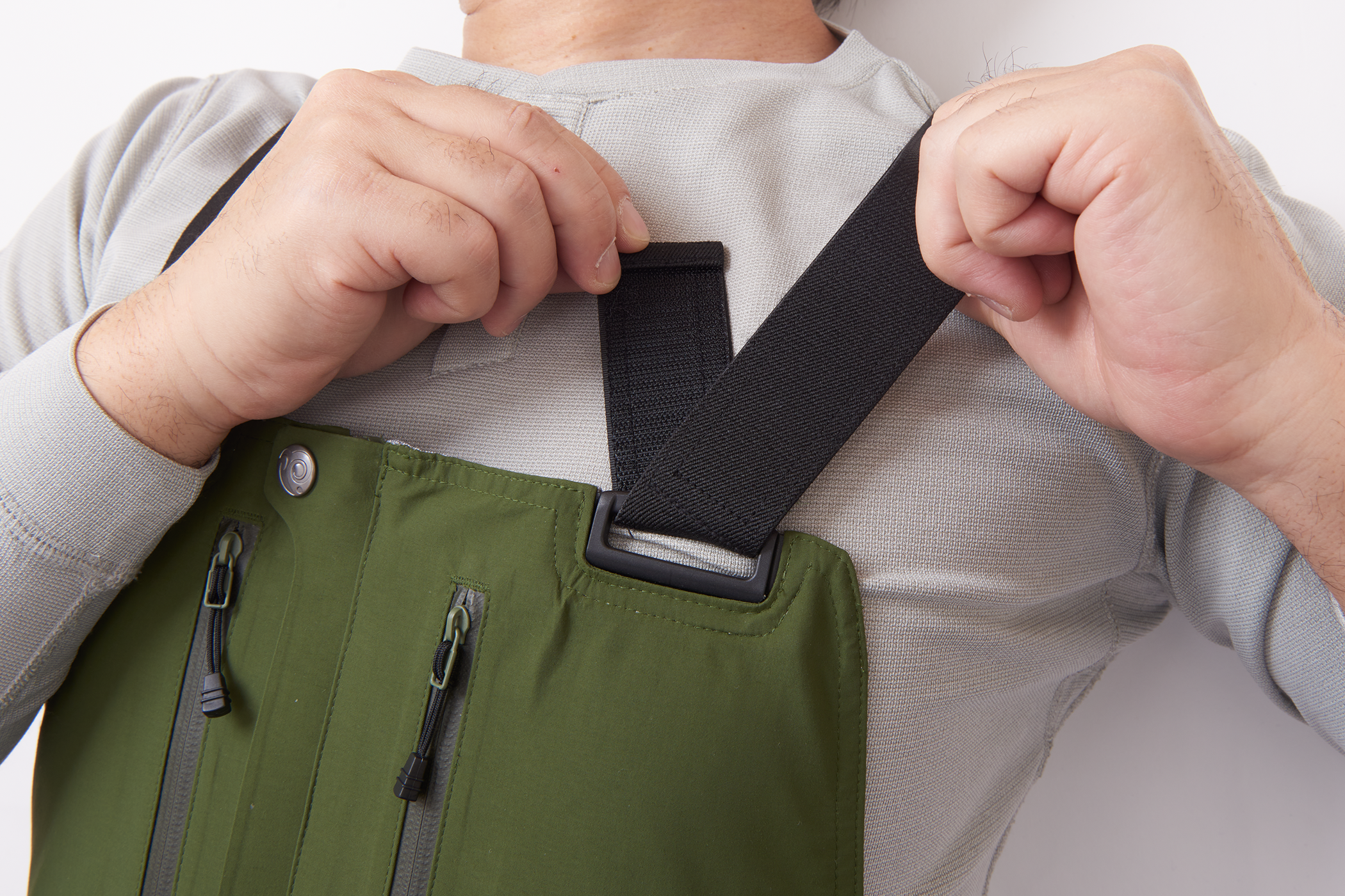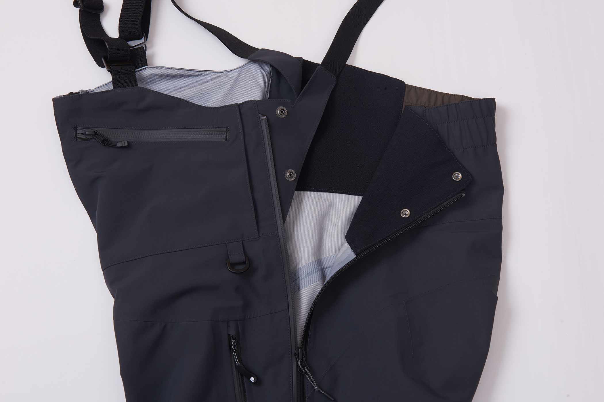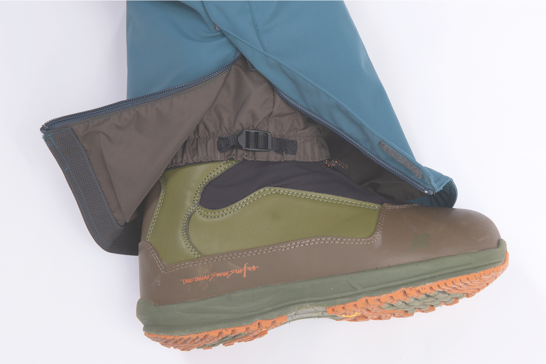 また、YOTEI PANTS と着脱できるパウダーガードも備えているため、深いパウダーでもライディング中に雪が入ってくるのを防ぎます。