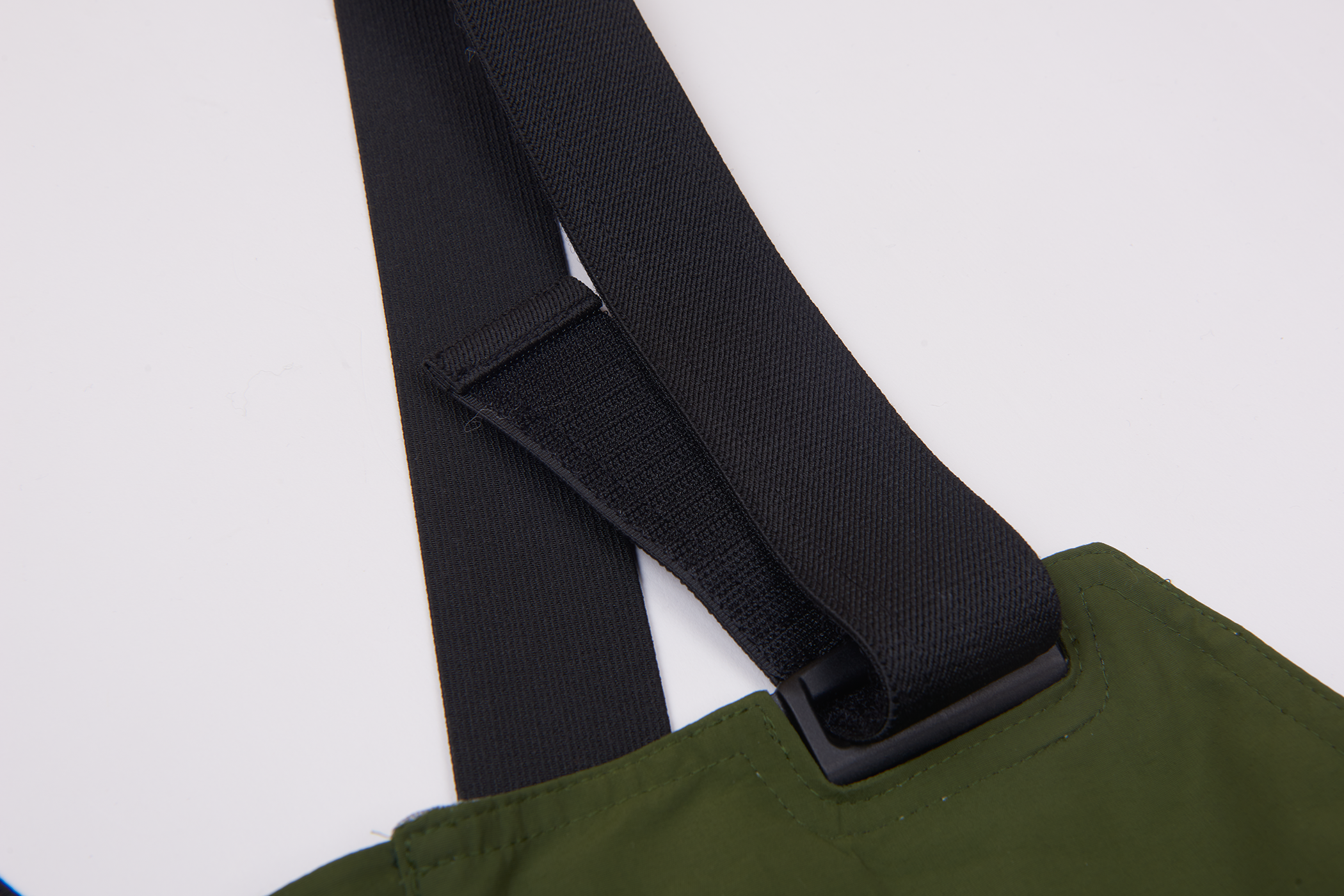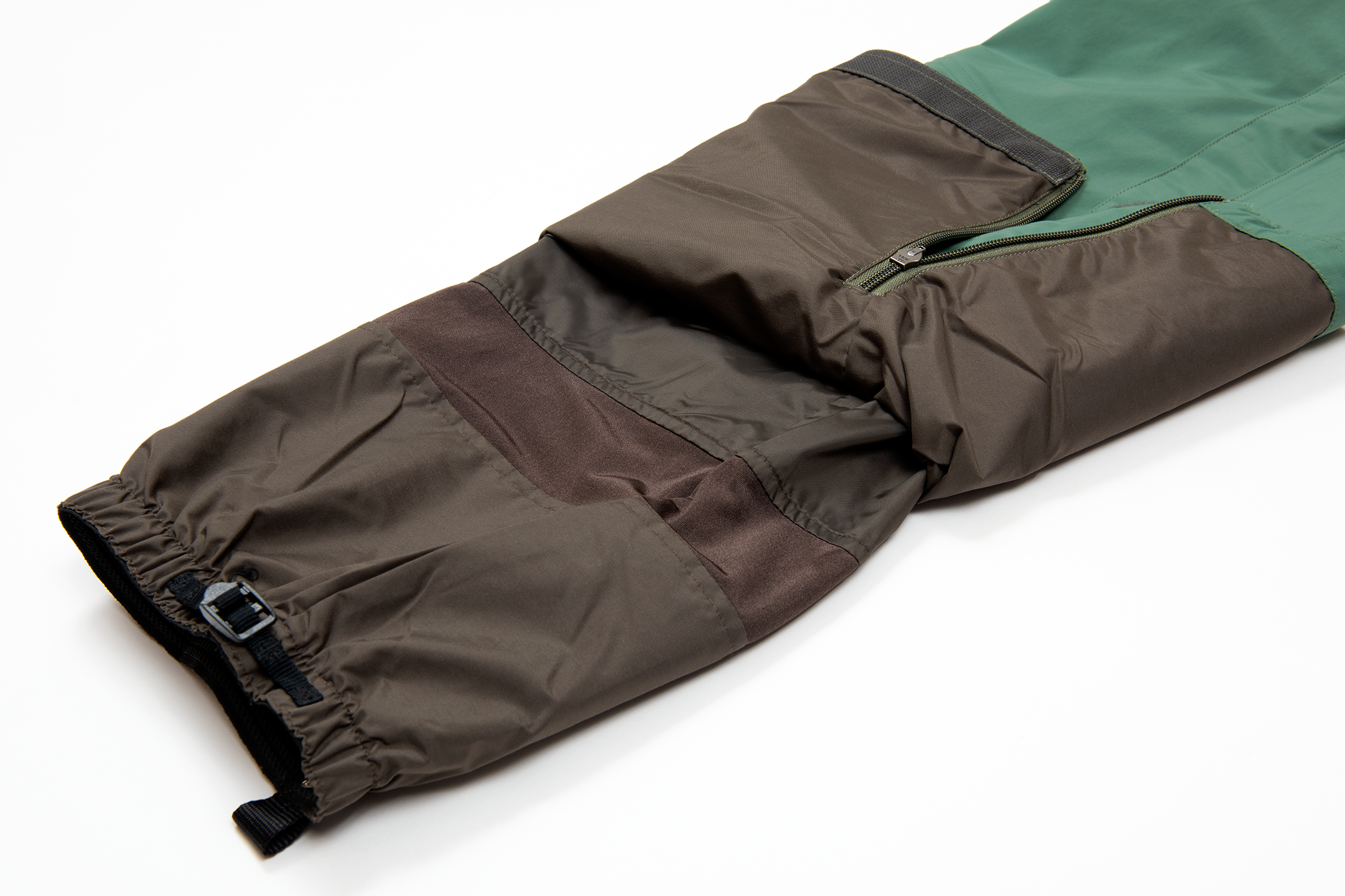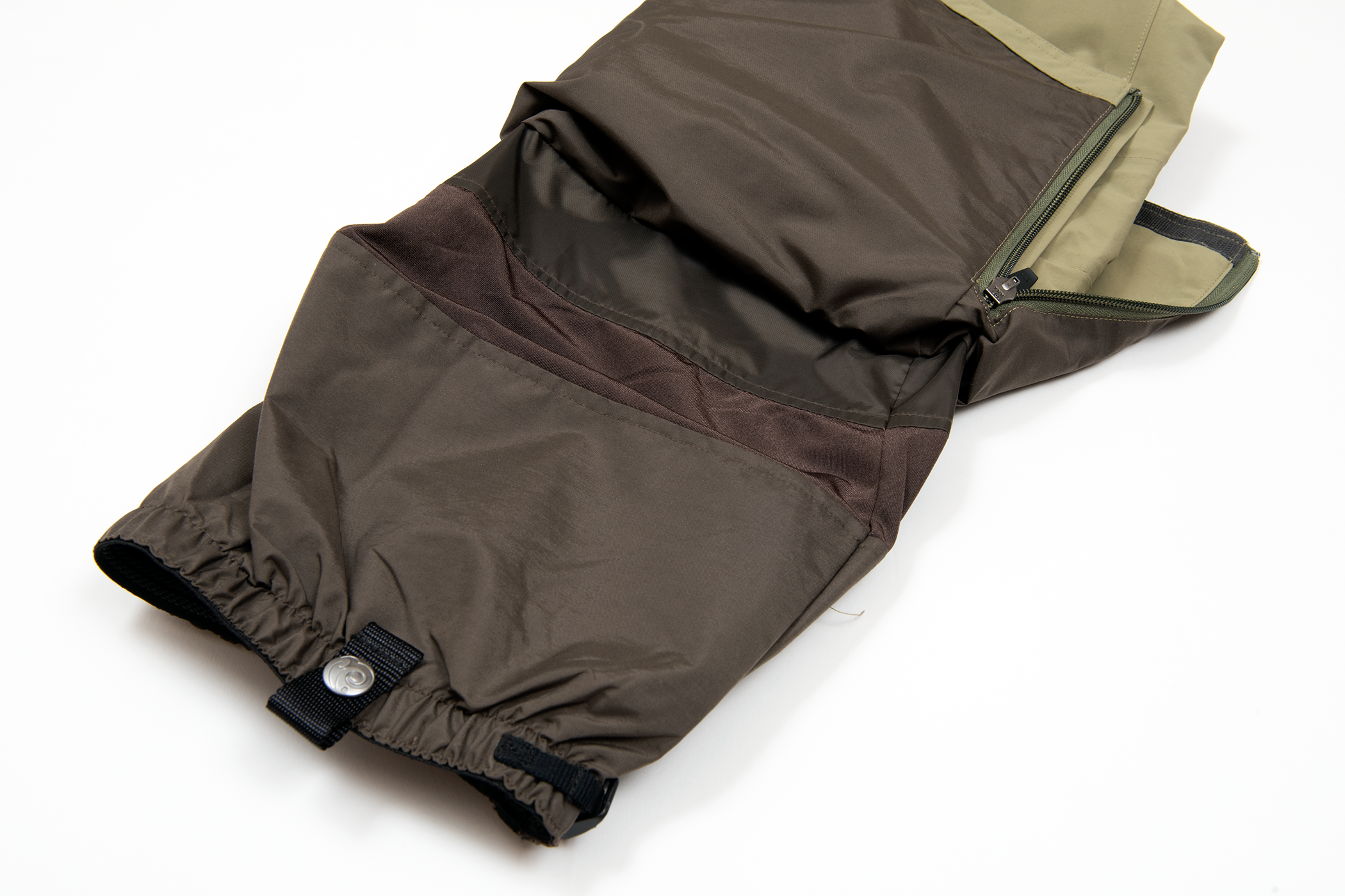 裾の伸縮するパウダーゲーターは下部に防水素材を二重に使用しているため、丈夫で内側が濡れるのを防いでくれます。さらに足首まわりにはフィット感が調整できるパーツを備えています。