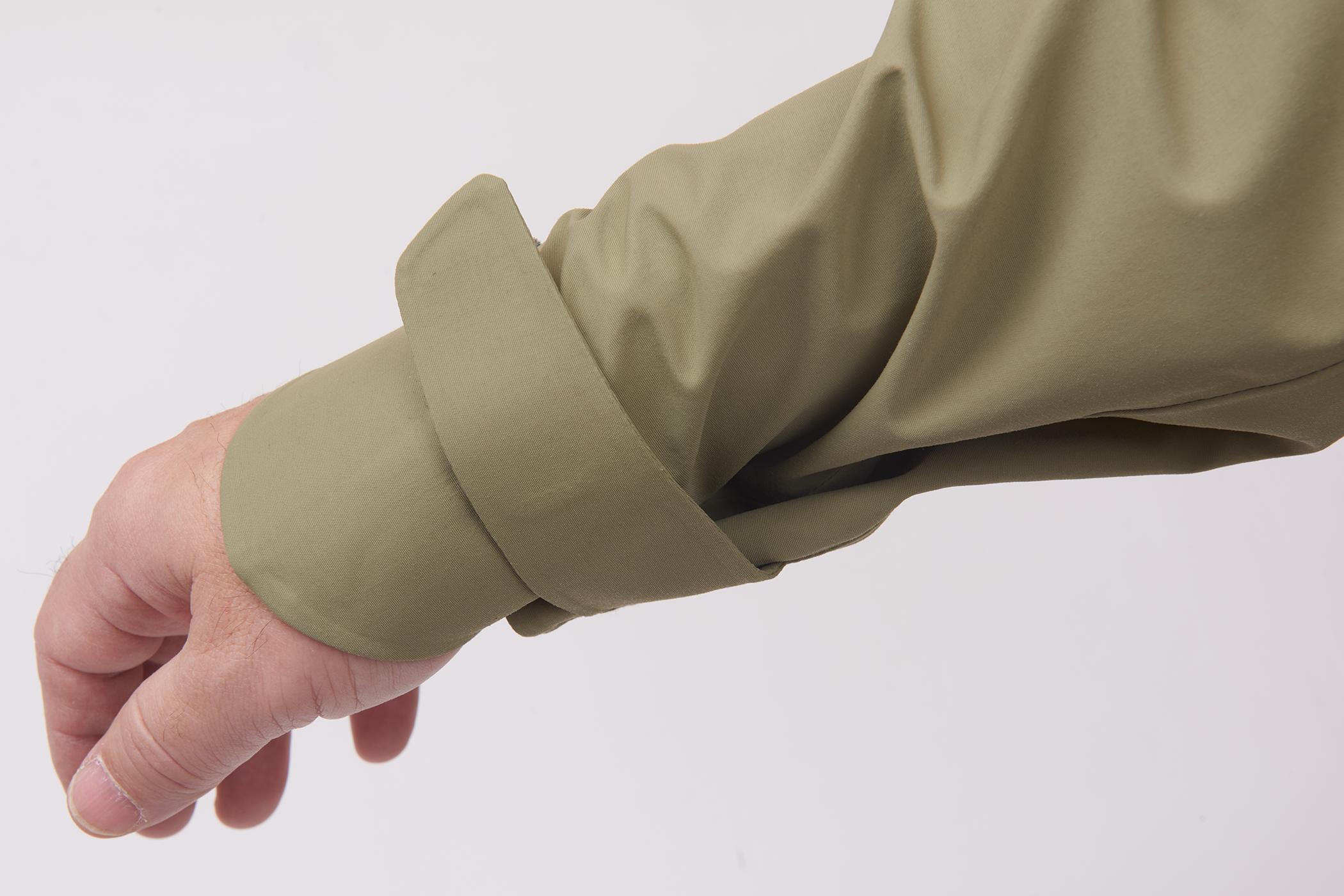 - 表地表面には耐久撥水(DWR)加工、裏面には透湿性耐水加工を施している