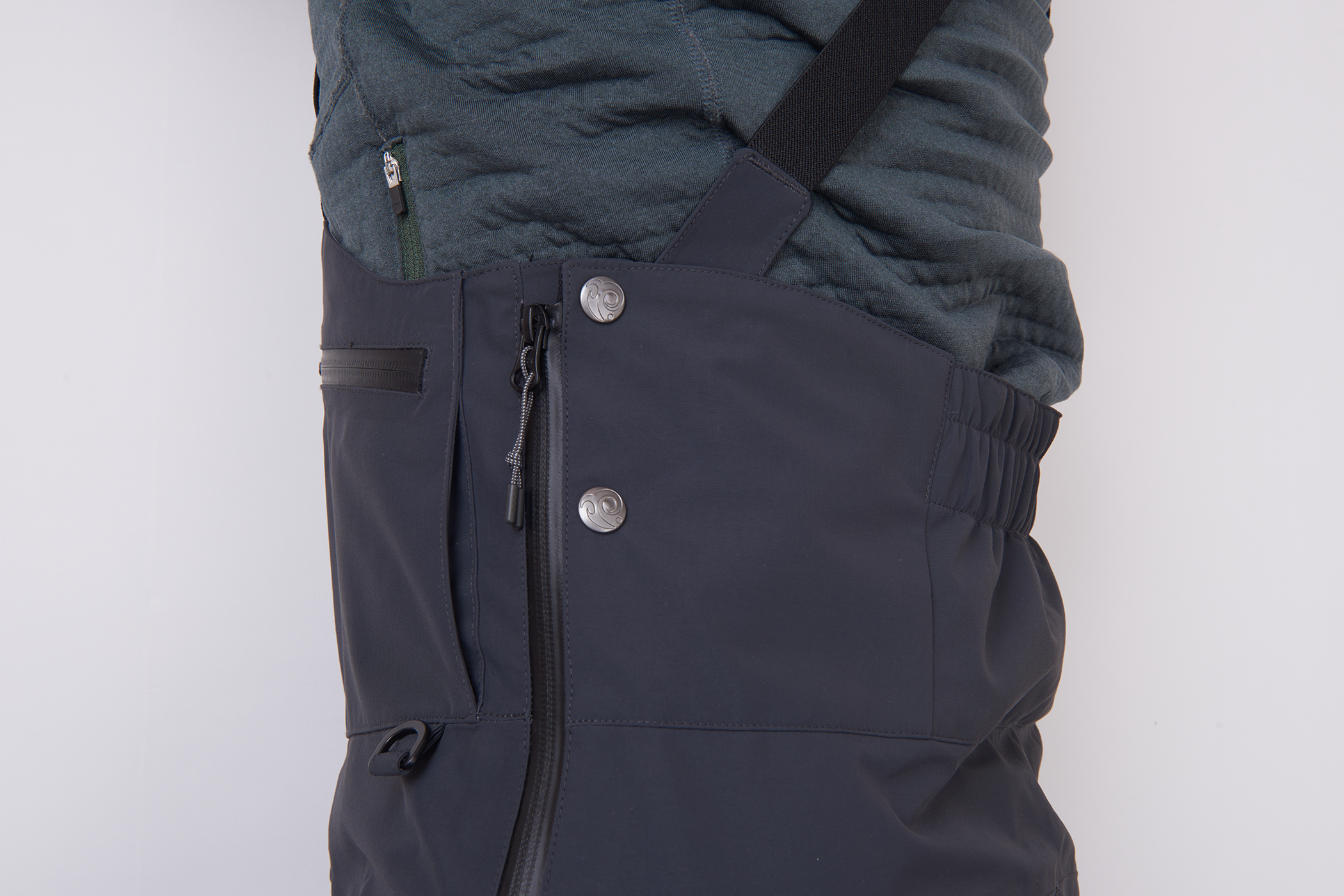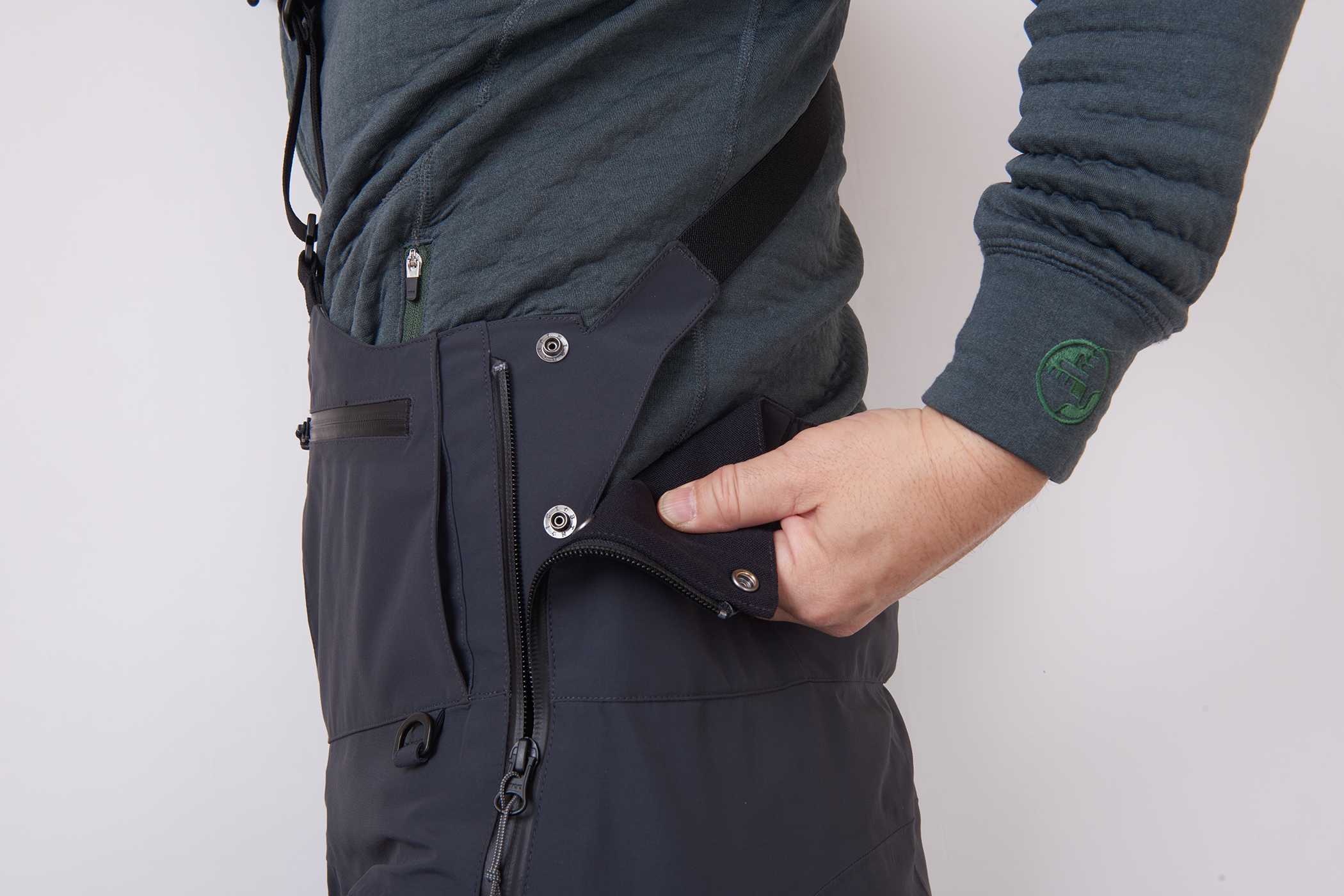 両腿に配置しているカーゴポケットのファスナーの傾き(角度)を昨シーズンモデルから修正しました。ファスナーの傾きを緩やかにすることで、リフトの上でファスナーを開閉する際にポケットの出し入れがしやすくなりました。