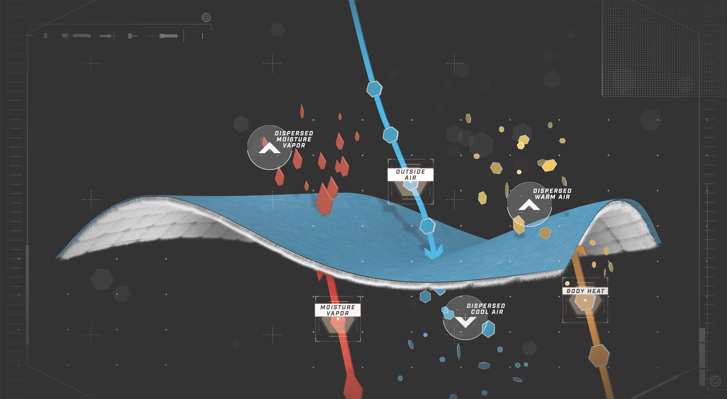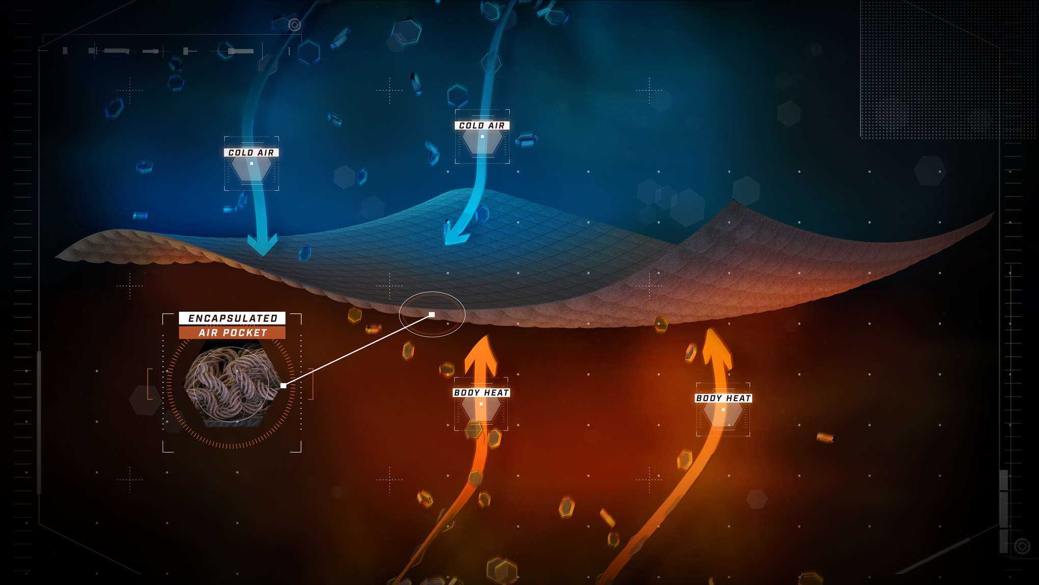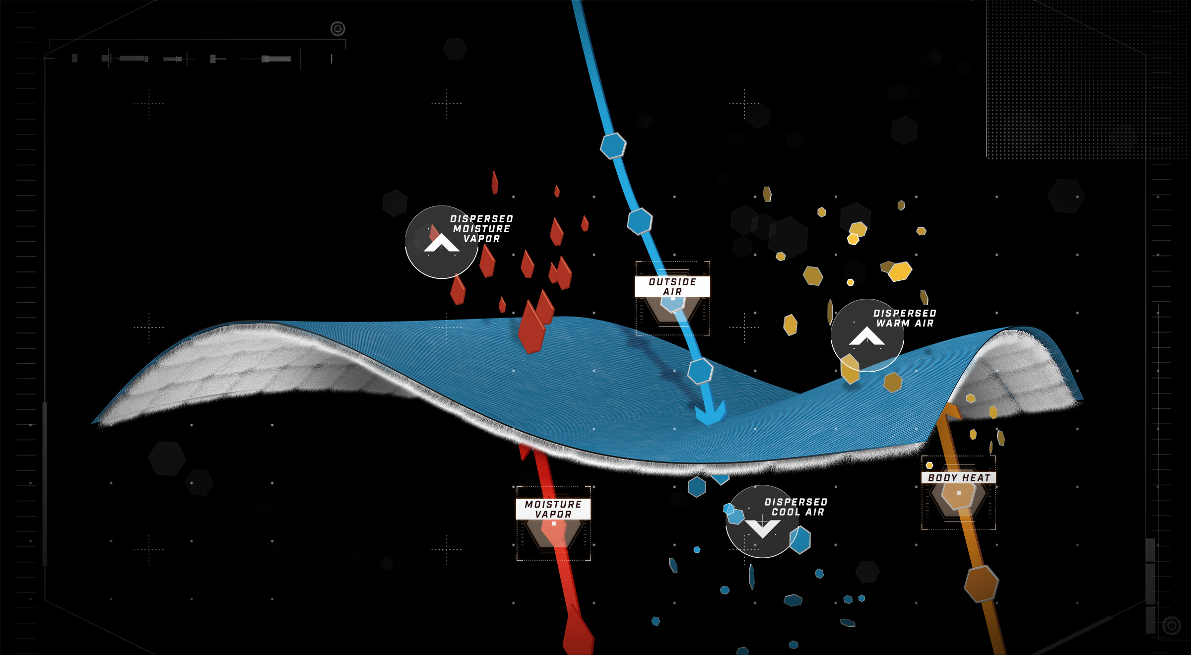 ポーラテック社は化繊中綿と同様に軽量で保温性に優れ、尚かつ非常に高い通気性を持つ中綿「POLARTEC ALPHA」を開発しました。