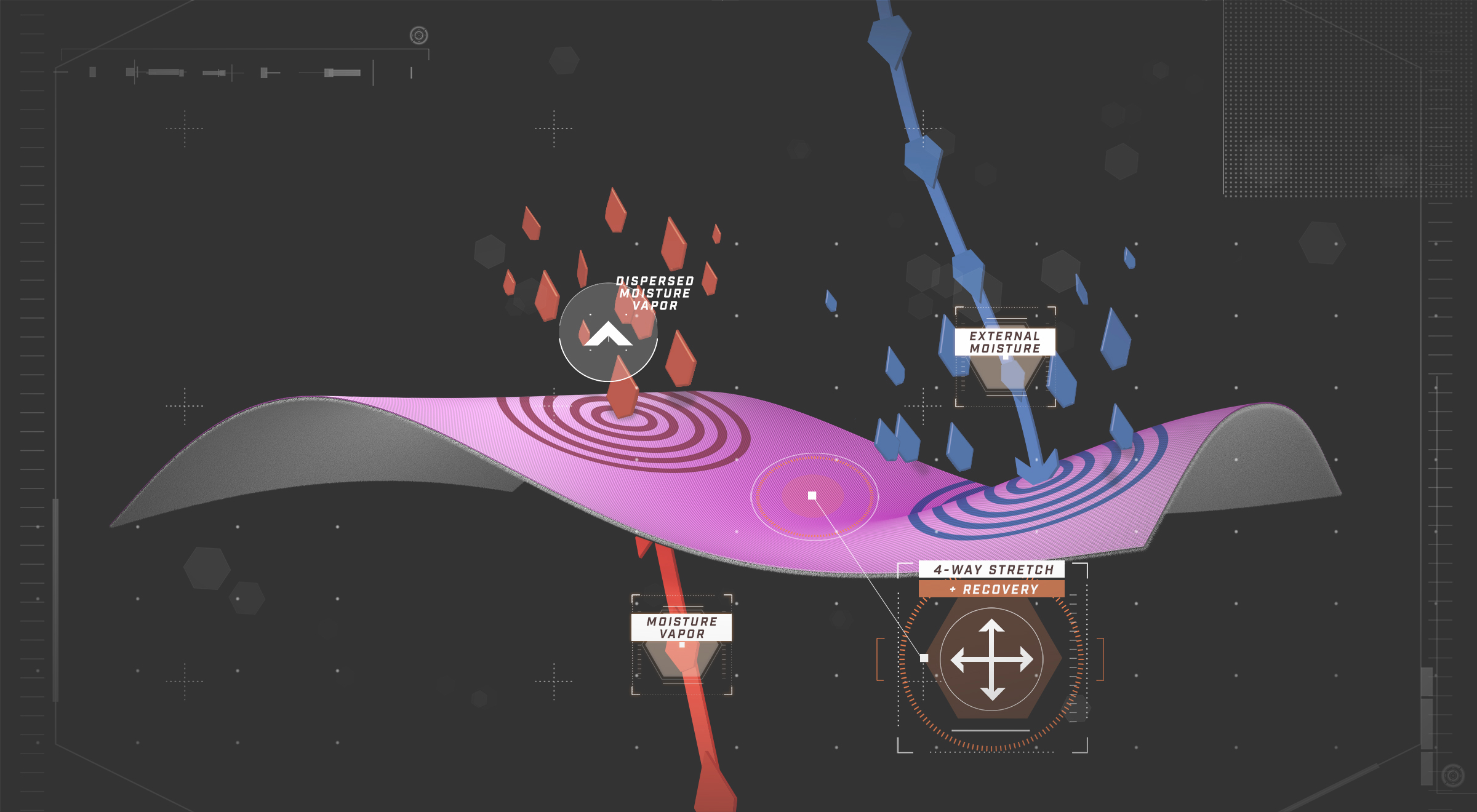 P.RHYTHM は16/17シーズンから継続して POLARTEC「パワーウール・グリッド」をベースレイヤーに採用してきました。同じ素材を長期間に渡って使用している理由は、保温性、ストレッチ性、吸湿速乾性に加え、天然の抗菌防臭機能や体温調整機能といったベースレイヤーに求められる機能を兼ね備えているからです。